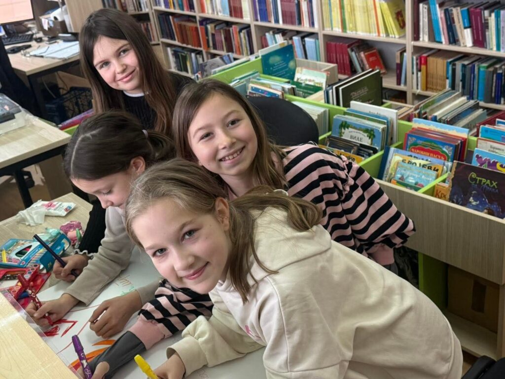 На крају радионице, деца су украсила библиотеку.